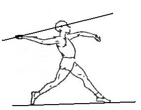 ► Unghiul de lansare are varful la nivelul mainii aruncatorului, o latura este formata de dreapta data de directia obiectului aruncat, cealalta fiind paralela cu solul. Teoretic, unghiul cel mai favorabil pentru obtinerea unei distante cat mai lungi (toate celelalte conditii fiind egale) este cel de 45