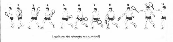 - procedee de lovire a mingii din lateral (lovitura de dreapta, lovitura de stanga cu o mana si cu doua maini, voleul, lobul si demivoleul);