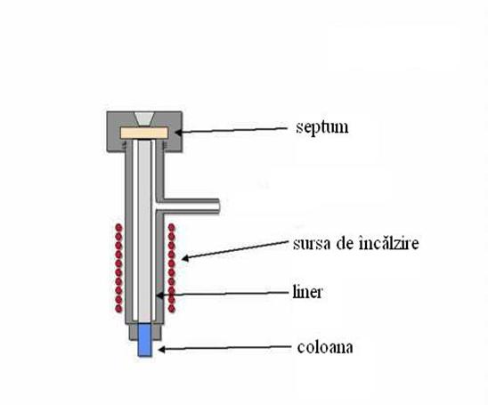 In cazul probelor lichide, temperatura portului de injectie trebuie sa fie cu peste 500C peste punctul de fierbere al componentului cel mai putin volatil din proba astfel incat intregul volum de proba sa fie vaporizat. In figura 5 este prezentat portul de injectie al unui sistem GC.