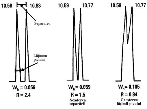 Pentru o buna precizie si acuratete a analizei gaz-cromatografice este necesara o injectie a probei cat mai exacta si reproductibila. Pentru o buna eficienta a coloanei este necesar ca proba sa aiba marimea potrivita si sa fie introdusa cu viteza adecvata si constanta sub forma de "spray" de vapori. O viteza de injectie mica a probei determina o rezolutie de separare slaba (figura 4).