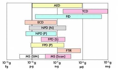 In functie de detectorul ales sunt implicate un numar diferit de gaze. De exemplu, pentru detectorul cu ionizare in flacara, FID si detectorul specific azot/fosfor, NPD este necesar hidrogenul, drept gaz de ardere, aer/oxigen drept gaz de intretinere a arderii si azot, hidrogen, heliu sau alt gaz inert ca faza mobila.
